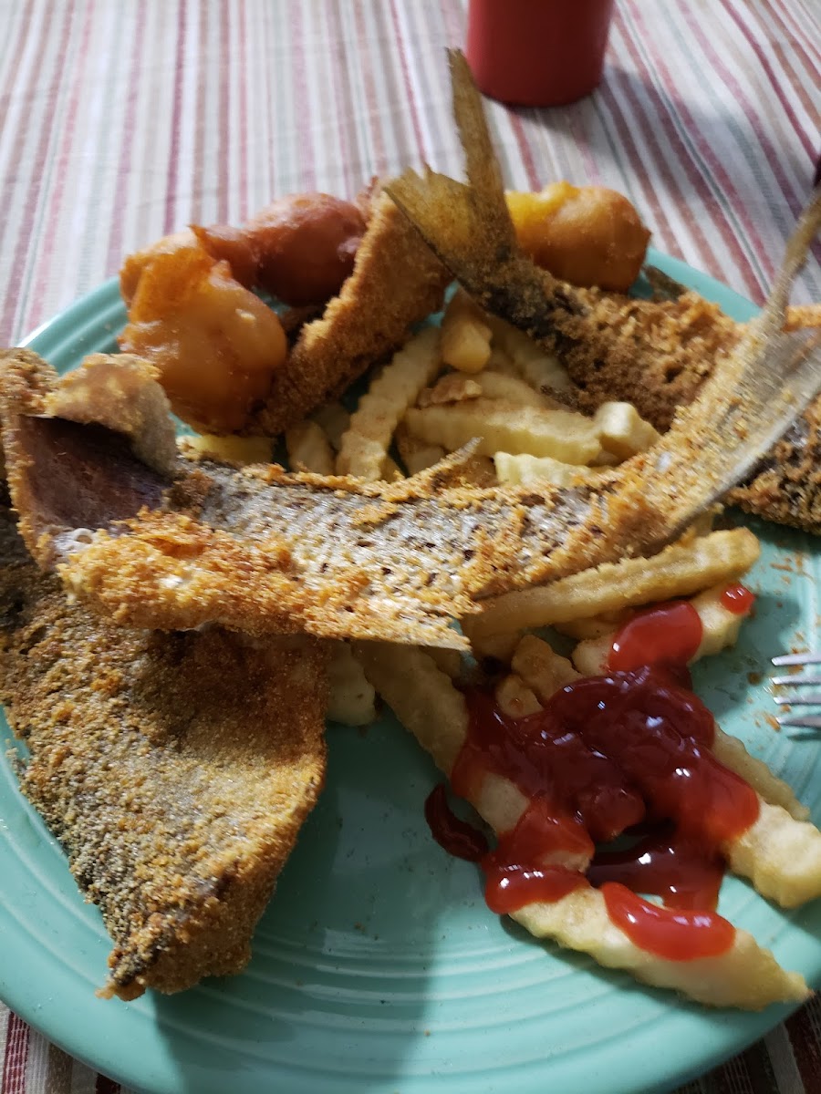 We saw the buffet and asked if they had any mullet. Our server, Rebecca, said not on the buffet, but she could ask if Summer would cook some up for us. She did, and it was very good. We also liked the coleslaw, greens, okra, and pumpkin pie. Very friendly and attentive staff!